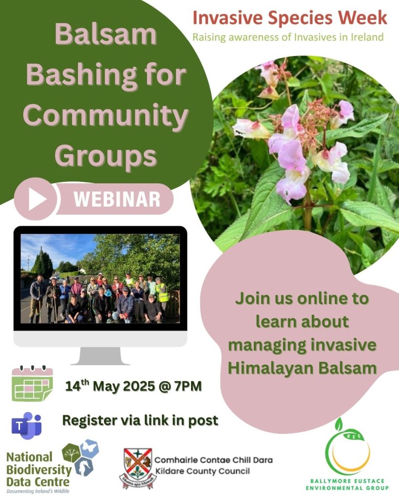 Join us for a evening webinar on Invasive Species Week, where we will learn how to identify Himalayan balsam, understand it’s environmental impact and discover the best practices for removing it, including hand-pulling techniques, timing for removal, and safe disposal methods to prevent regrowth. We will also hear about a successful community project at Ballymore Eustace, Co. Kildare that has made significant strides in managing Himalayan balsam and improving local biodiversity. Reserve your spot at the link below.