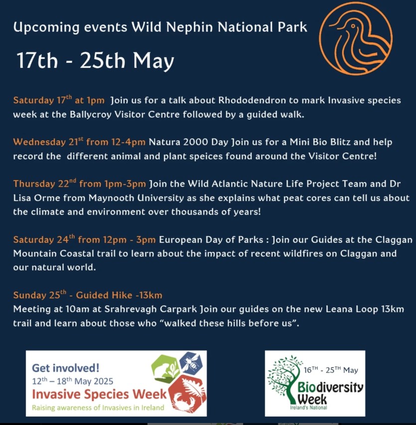 Join staff at Wild Nephin National Park for a talk about Rhododendron in the park followed by a guided walk of the beautiful Ballycroy Visitor Centre grounds.